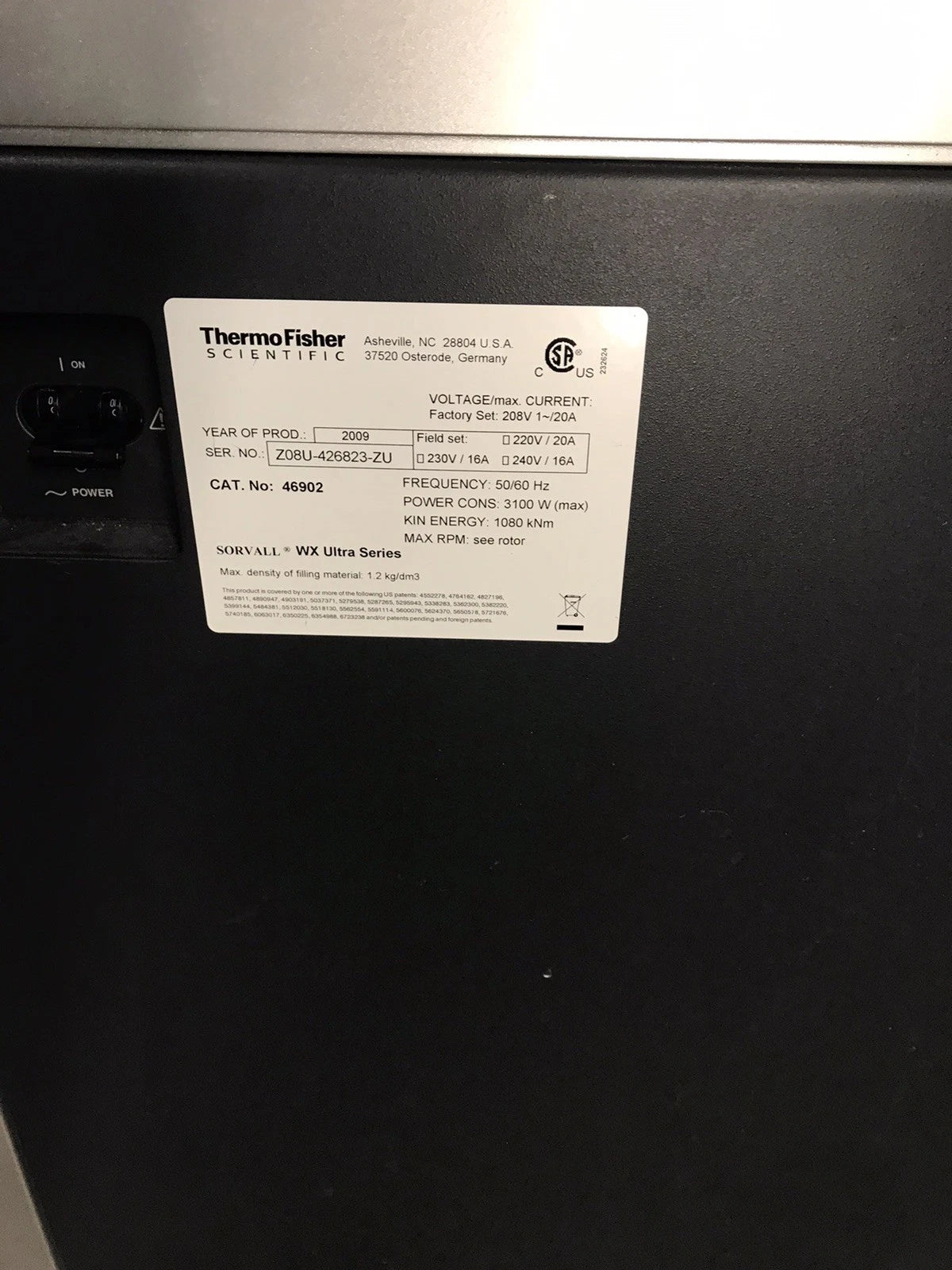 - 1x Thermo Scientific Sorvall WX 100 Ultra Series Centrifuge 46902 (for parts )